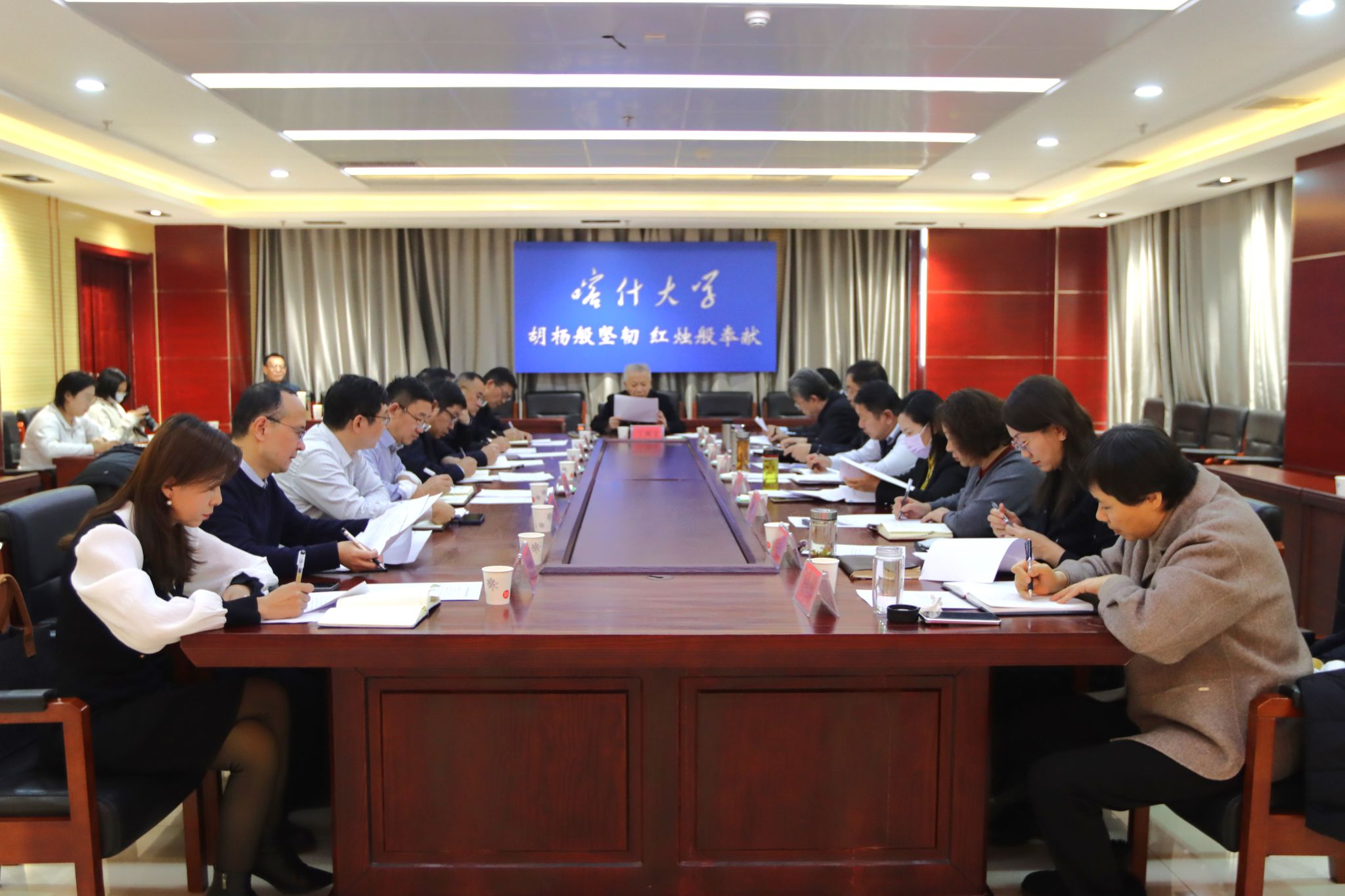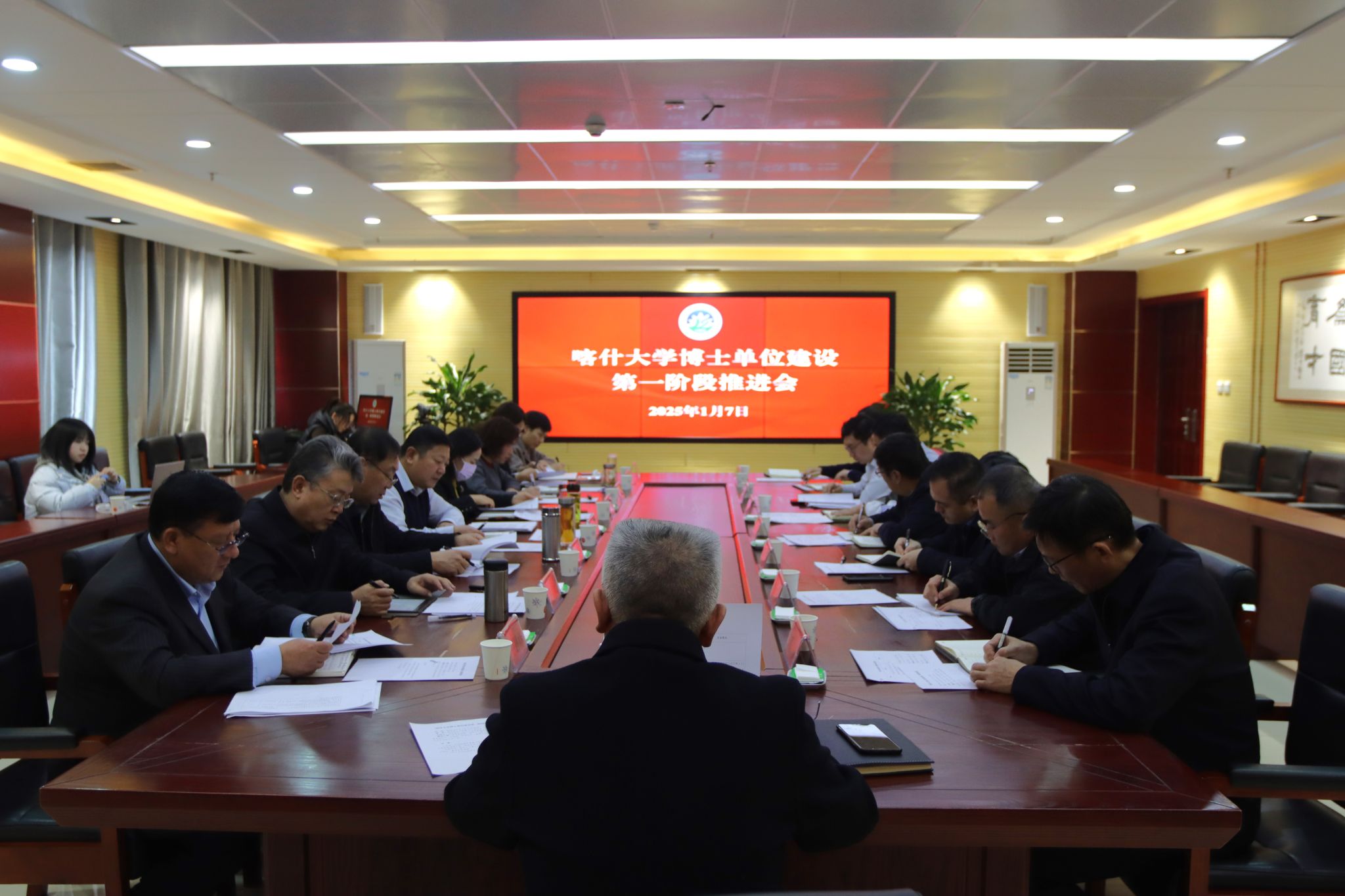 2025年1月7日,我校在新泉校区行政楼411会议室召开了博士学位授予单位建设第一阶段工作推进会。会议由校长买买提明•木沙主持,所有在家校领导出席,同时参会的还有学校组织(人事)部、教师工作部、发展规划处、科研处、研究生处、教育科学学院的主要领导及研究生处相关工作人员。